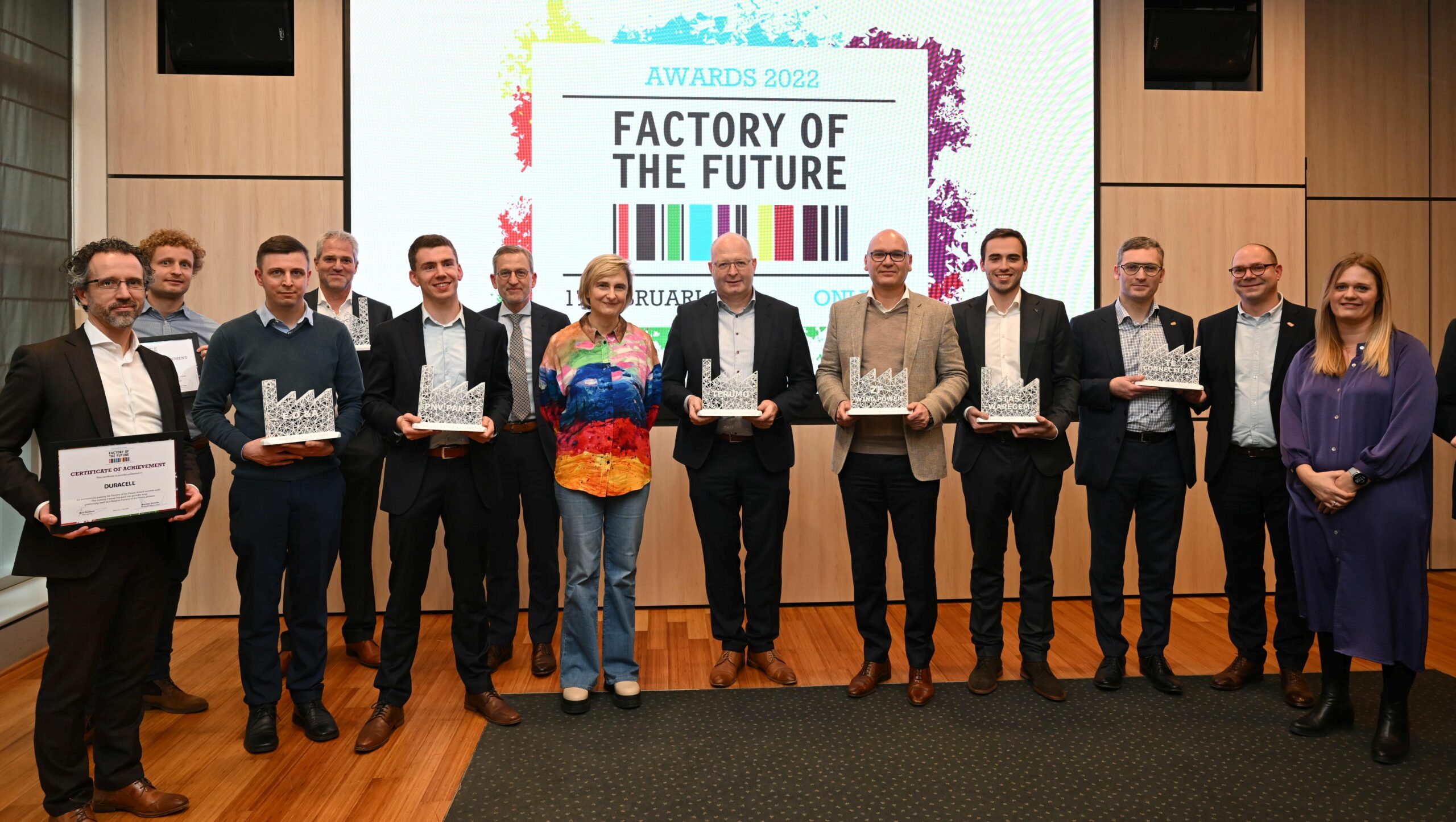 “Ook de acht maakbedrijven die hun titel verlengen, willen we uitdrukkelijk feliciteren om hun volgehouden inspanningen. Belangrijk voor Factories of the Future is niet alleen de bestemming, maar ook de reis.” Dat zegt Jolyce Demely, algemeen directeur van Agoria Vlaanderen. “Het meedingen naar een award helpt bedrijven om concreet richting en timing te geven aan hun transformaties. Maar het is natuurlijk geen einddoel. Elke bekroning kan op zich het startpunt vormen voor alweer een volgende uitdaging. Het is die mindset die onze toppers op voorsprong houdt in de industrie 4.0-race. Dit is nodig om onze maakindustrie in Vlaanderen te verankeren en tegelijk internationaal op de kaart te houden.”