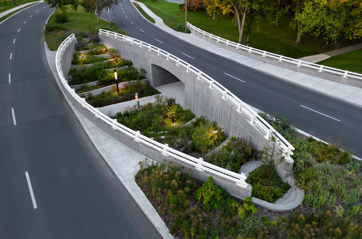 De licht gebogen nieuwe bruggen – elk met een lengte van 37 m – zijn een grote verbetering ten opzichte van hun voorgangers. Ze zijn veiliger en toegankelijker voor voetgangers en fietsers, met nieuwe LED-verlichting en bredere voetpaden. Bovendien is er een nieuw, weelderig groen gebied toegevoegd om het zichtbeton te verlevendigen.