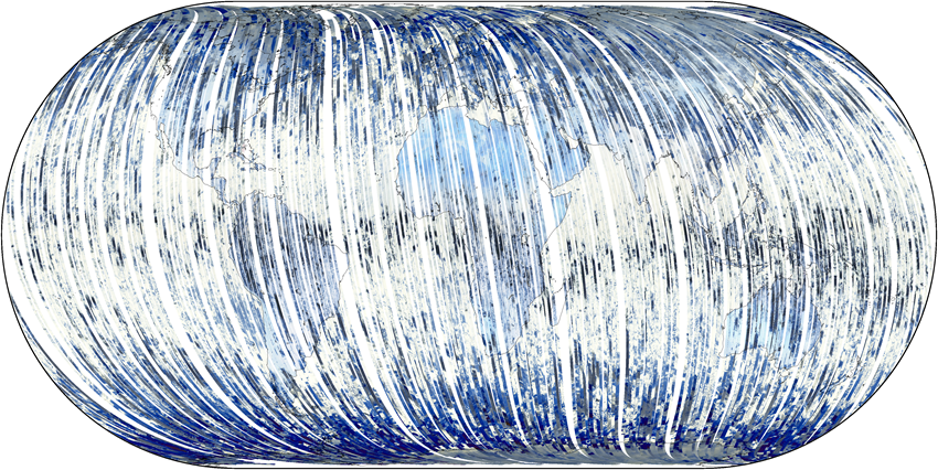 Openingsfoto: Wereldkaart in gepolariseerd licht, opgebouwd uit de 100-km brede stroken die SPEXone over de aarde trekt. Credit: SRON