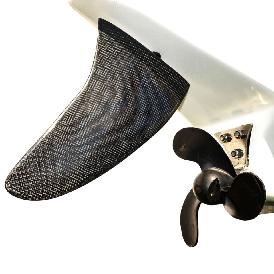 Die motor drijft een schroef aan die min of meer recht naar achteren uit de kiel steekt. De motor is met één druk op de knop in te schakelen. Eén knop bevindt zich op het stuurwiel maar er is er ook één in de peddel geïntegreerd. Het roer van de eMogi wordt bediend door op de voetsteunen in de kajak te drukken, of door het stuurwiel te draaien. Uiteraard kan ook de peddel worden gebruikt.