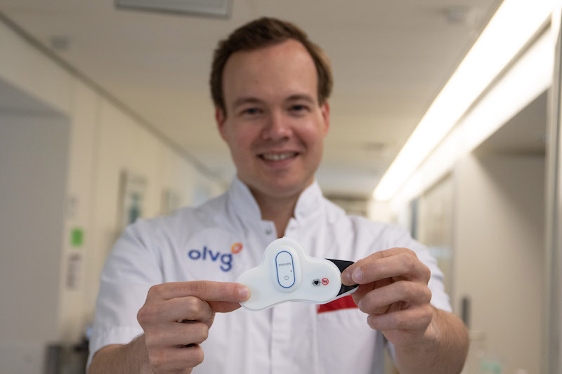“Met behulp van deze nieuwe biosensor kunnen we op afstand de toestand van patiënten constant in de gaten houden. Dit is extra belangrijk op de COVID-afdelingen”, zegt Florian van der Hunnik, Chief Nursing Information Officer en teamleider van de COVID-afdeling van het OLVG in Amsterdam. “Nu we niet zomaar de kamer van de patiënt in en uit kunnen lopen zonder beschermingsmiddelen, is deze innovatie zeer welkom, want hiermee kunnen we ons werk beter doen.”