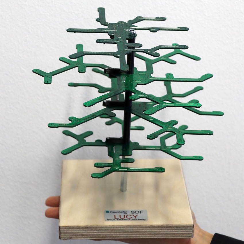 LUCY is een array van MEMS-microfoons – bekend als een kraaiennestarray. Doel is om ze op drones te monteren om te bepalen uit welke richting geluiden zoals hulpgeroep, geklap of klopsignalen komen. De kleine, robuuste MEMS-microfoons zijn goedkoop. Ze worden gebruikt in toepassingen zoals smartphones. Het bijzondere aan dit systeem is dat de microfoons in een speciale geometrische configuratie aan de onderkant van de drone zijn bevestigd. Hiermee kunnen ze geluid uit alle richtingen waarnemen. “Het hoogste uitkijkpunt op schepen waarmee je in alle richtingen kunt kijken, staat bekend als het kraaiennest. Hetzelfde geldt voor LUCY. Ons systeem kan vrijwel onbeperkt in alle richtingen horen,” legt Macarena Varela uit.