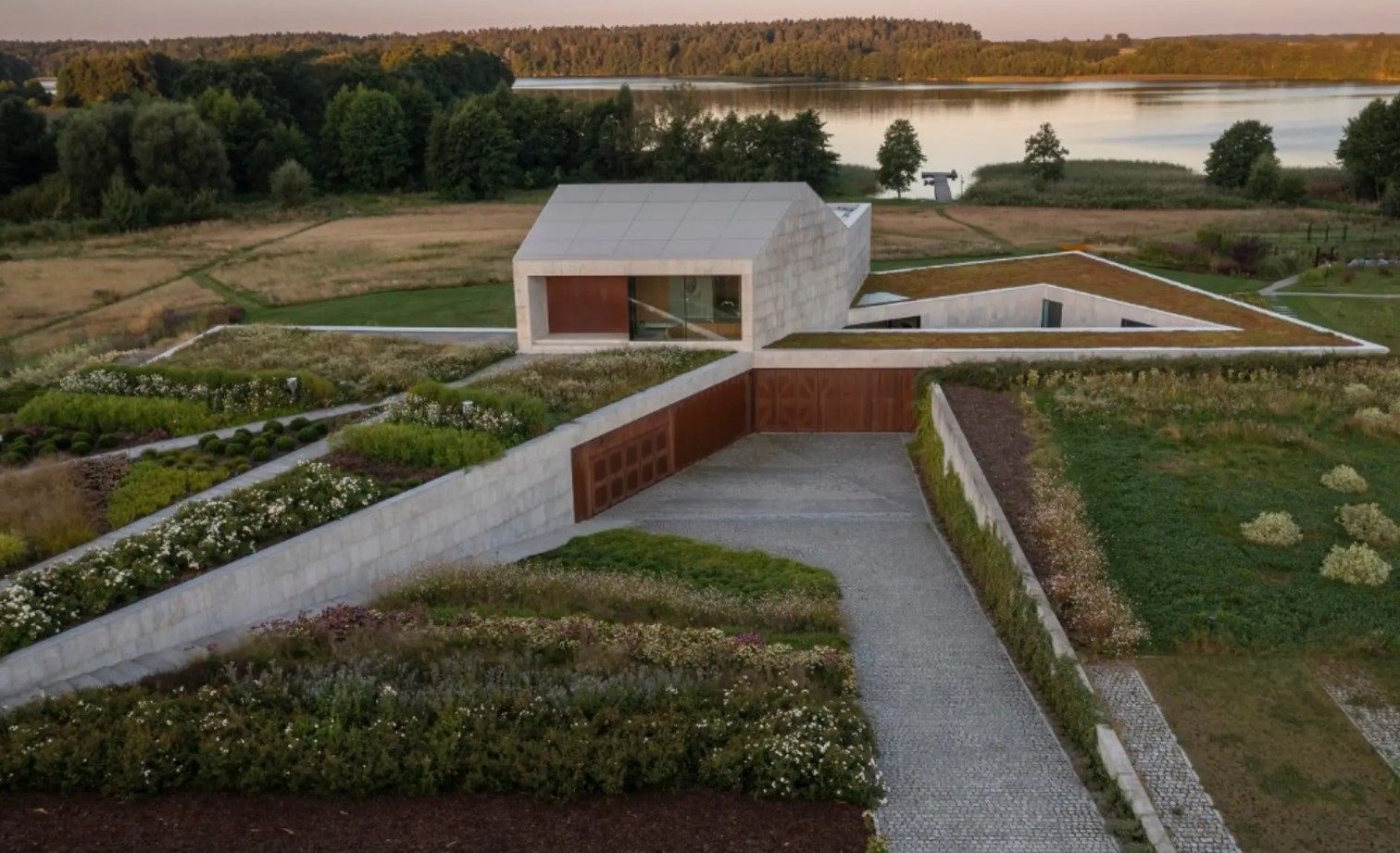 In een landelijk gebied in Polen heeft de studio Mobius Architekci een indrukwekkend architectonisch ontwerp gemaakt dat de traditionele schoonheid van een boerderij naadloos laat samensmelten met gedurfd, modern minimalisme. Het project heeft een eigentijds ontwerp met groene daken om de impact van het gebouw op het milieu te verminderen.