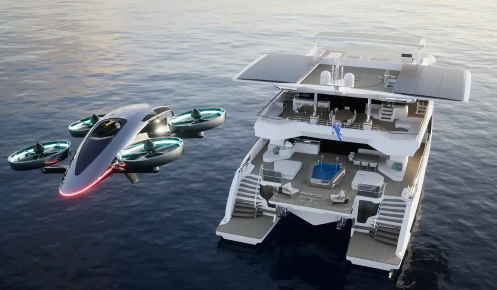 De eVTOL gaat landen en opstijgen vanaf een helikopterplatform. Deze bevindt zich op het dak van de Silent 120 Explorer. De zonnepanelen van het schip gaan de accu opladen. Maar als het jacht zelf meer stroom nodig heeft, kan de XP4 die leveren – net zoals elektrische auto’s al kunnen worden gebruikt om huizen van stroom te voorzien, wanneer dat nodig is.