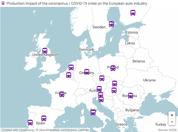 Dit blijkt uit cijfers van brancheorganisaties ACEA, dat op een interactieve kaart de impact van het coronavirus op de productie in de automotive sector in beeld brengt. Tot nu toe zijn door maatregelen gerelateerd aan het coronavirus 2.068.832 auto’s minder geproduceerd. Als we inzoomen op Nederland gaat het naar schatting om 26.986 exemplaren.