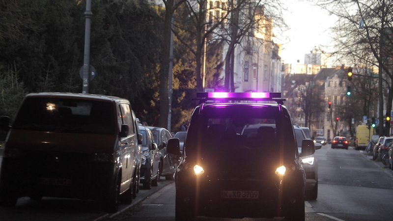 Tijdens een test in Duitsland werd een Ford Transit Connect voorzien van een dergelijke lichtbalk. Dit voertuig was niet zelfrijdend, maar werd door een menselijke bestuurder bestuurt. Om het systeem desondanks goed te kunnen testen had deze bestuurder een speciaal pak aan waardoor hij onderdeel leek van de bestuurdersstoel van het voertuig. De bestuurder was hierdoor voor omstanders en andere weggebruikers niet te zien.