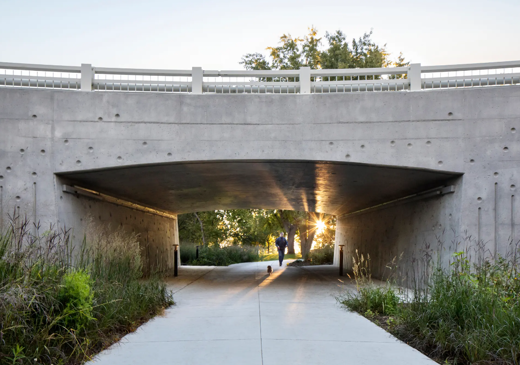 De licht gebogen nieuwe bruggen – elk met een lengte van 37 m – zijn een grote verbetering ten opzichte van hun voorgangers. Ze zijn veiliger en toegankelijker voor voetgangers en fietsers, met nieuwe LED-verlichting en bredere voetpaden. Bovendien is er een nieuw, weelderig groen gebied toegevoegd om het zichtbeton te verlevendigen.