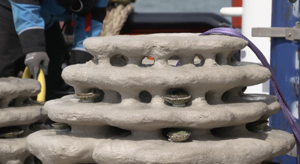 Om het onderwaterleven in de Noordzee een impuls te geven, zijn onlangs onder meer 3D-geprinte rifstructuren op de bodem geplaatst. Het is de bedoeling dat zich op deze rifstructuren schelpbanken gaan vormen, want die zijn onmisbaar voor planten en dieren in de zee.