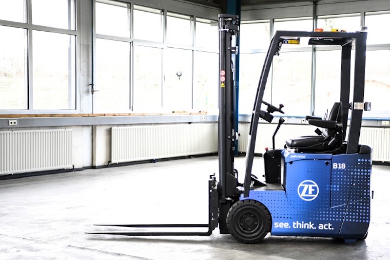 Het Duitse ZF lanceert een autonome vorkheftruck die volledig elektrisch wordt aangedreven. De ZF Innovation Forklift kan via het netwerk van een productiefaciliteit hierdoor communiceren met andere systemen binnen de faciliteit. Dit stelt de vorkheftruck in staat data te verzamelen uit andere systemen, deze met behulp van slimme algoritmes te analyseren en op basis hiervan autonoom beslissingen te nemen.
