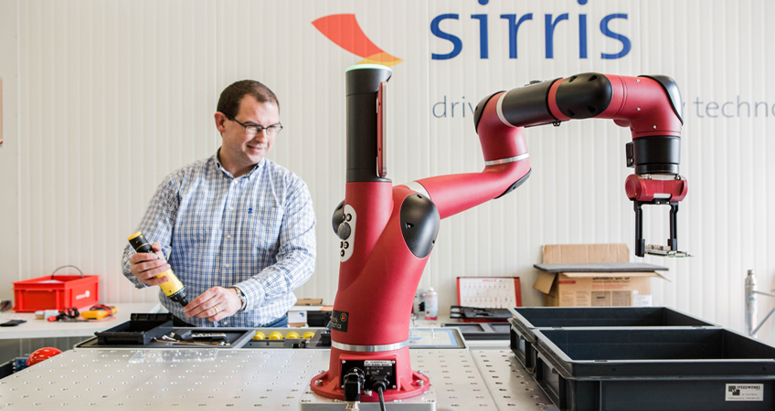 Het Belgische Sirris is een collectief centrum van de Belgische technologische industrie, dat als doel heeft het concurrentievermogen van bedrijven in deze sector te vergroten. 2.300 bedrijven zijn lid van Sirris. Het centrum voert haalbaarheidsstudies uit, geeft demonstraties van robots en verzorgt opleidingen. Sirris beschikt al langer over een UR3 en UR10 collaboratieve robot van Universal Robots en een LBR iiwa 14 van KUKA.