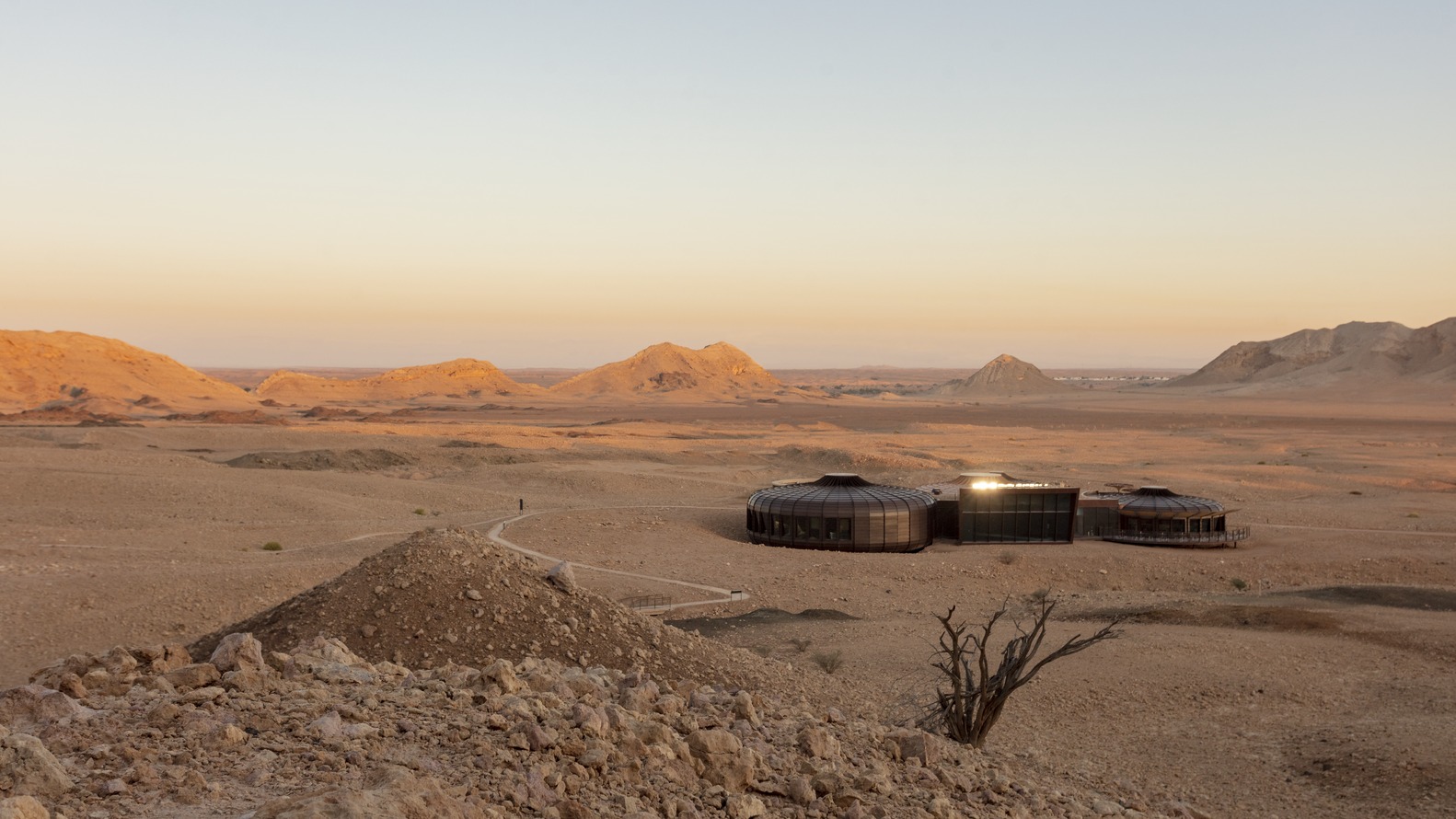 Middenin een terrein dat rijk is aan fossielen, liggen deze tentoonstellingscapsules